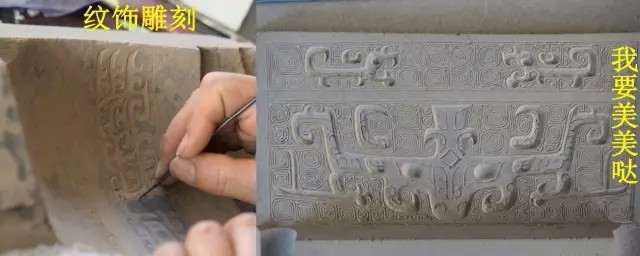 需要注意的是,刻出來的紋飾與澆鑄出來、體現(xiàn)在器物上的紋飾是反的,凸起處在器物上就相應(yīng)的是凹面。